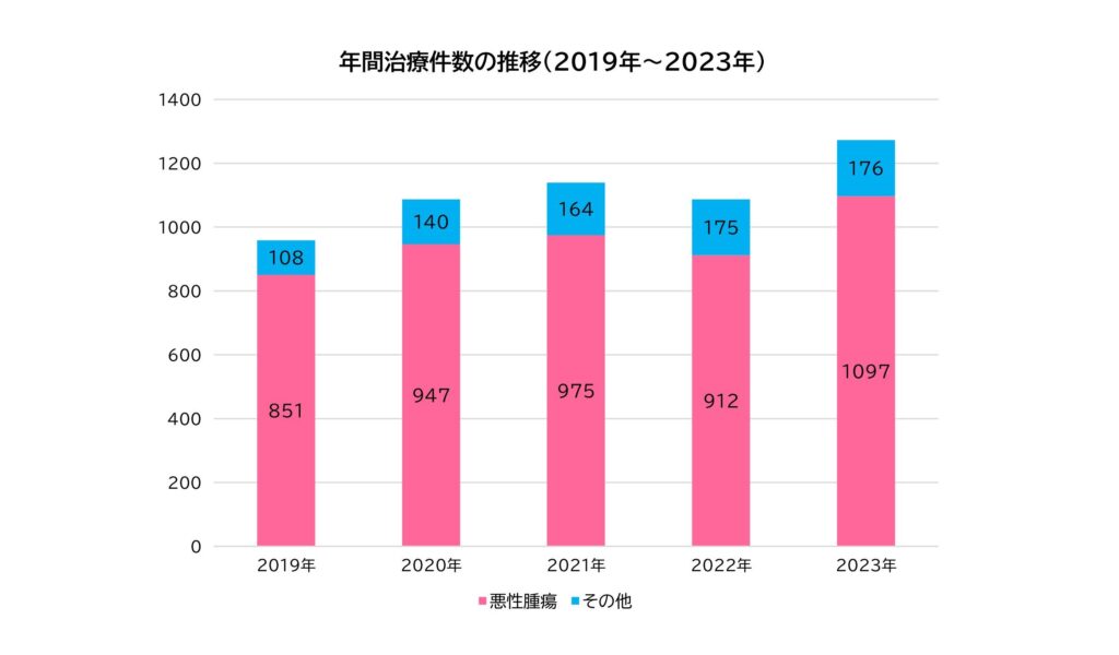 当院の外来化学療法室は、平成20年に開設され、現在8床(ベッド3床、リクライニングチェア5床)で稼働しています。外来化学療法室で実施される薬物療法は、年間約1200件を超えており、年々増加傾向にあります。 外来化学療法室では看護師だけでなく、初回導入時やレジメン変更時には薬剤師や栄養士による指導やマネジメントを行っており、多職種で連携しながら患者さんの支援をしています。また、薬物療法に関する専門的な知識を持つがん化学療法看護認定看護師が在籍しており、専門性の高い「安全・安心・確実な薬物療法」を提供しています。
