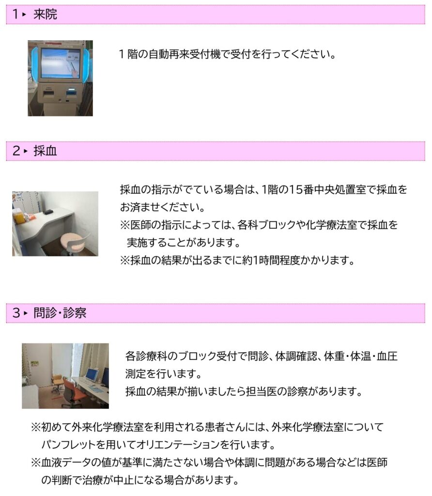※予約制をとっておりますが、外来化学療法室への入室や薬剤の調製に待ち時間が生じることがあります。ご了承ください。